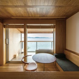広島の下瀬美術館に隣接するこのヴィラは、 アートの一部として設計された空間。瀬戸内の風景を切り取ったようなモダンなデザインが特徴で、滞在そのものがアート体験となります。大きな窓からは、朝夕と移り変わる美しい景色を眺めることができ、時間の流れをゆっくりと感じられます。