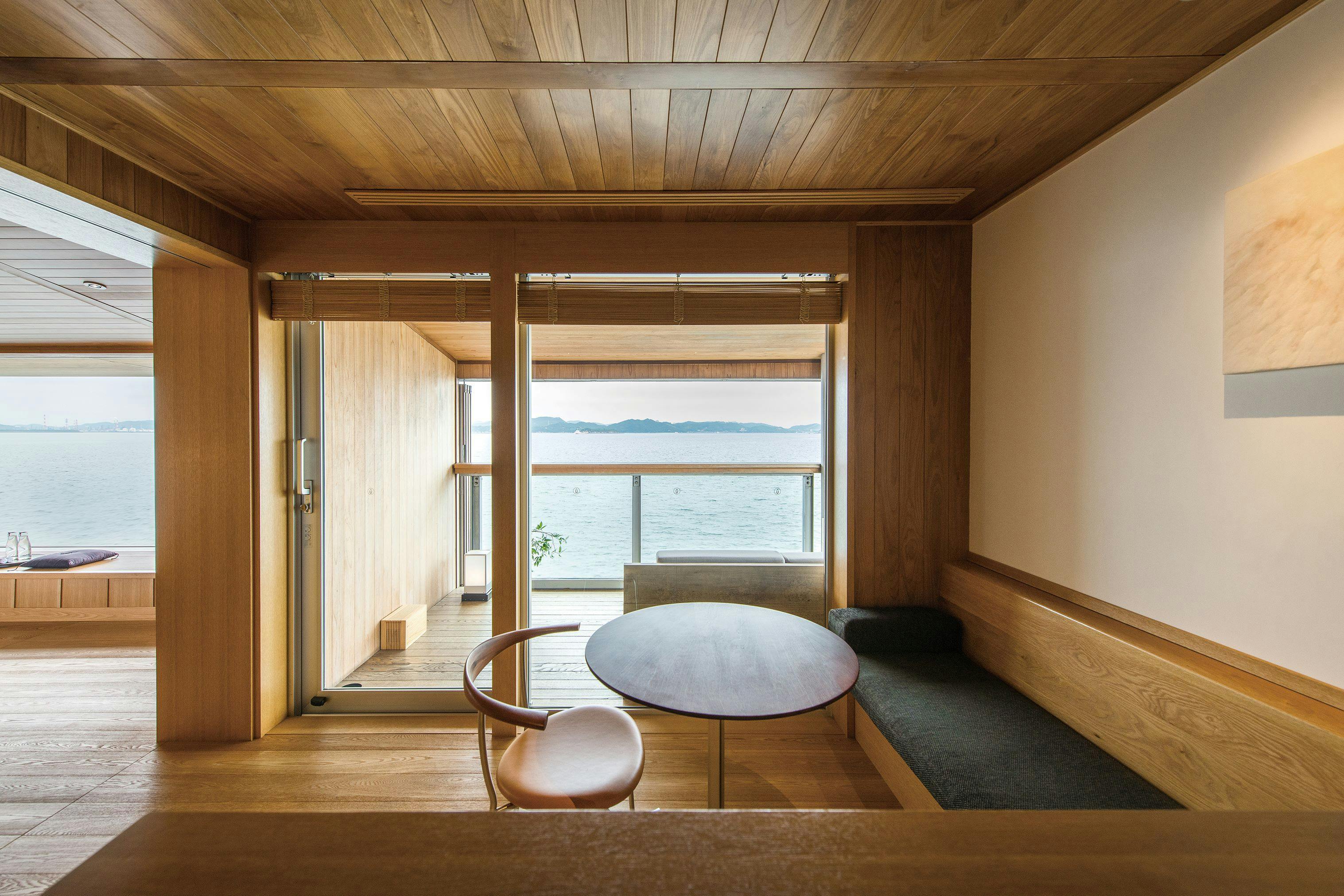 航海は3日間〜5日間がありますが、その間、船は一度も港に戻らず、瀬戸内海を漂います。常に変わりゆく瀬戸内海の表情や、一つとして同じ島はない瀬戸内の島々、そんな景色と一体になりながら、気の向くままに食事を楽しんだり、バーや縁側での時間を過ごしたり、スパで身体を休めたりします。